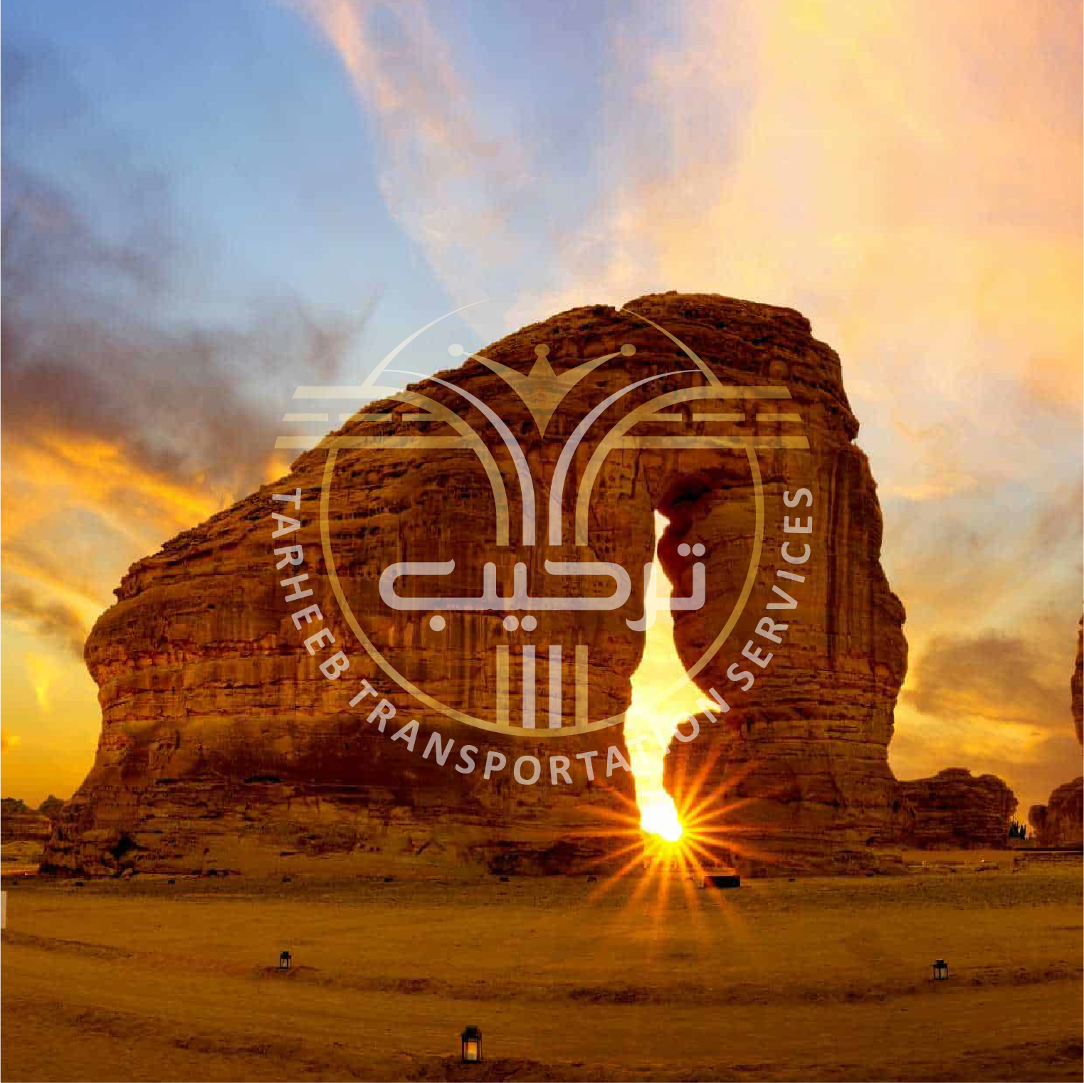 بعدها يتجه الفريق نحو جبل الفيل، أحد أشهر معالم العلا الطبيعية، لمشاهدة هذا التكوين الصخري العملاق الذي يقف شامخًا وسط الصحراء. يتيح المكان فرصة رائعة لالتقاط الصور ومشاهدة المناظر المفتوحة، خصوصًا عند اقتراب وقت الغروب حين تتزين السماء بألوان دافئة تعكس سحر المكان.